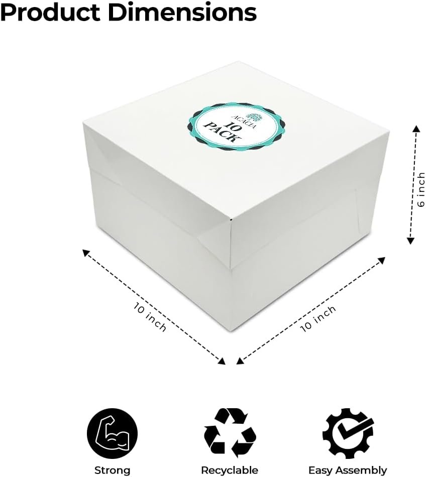 Present and transport your cakes with confidence using the ACACIA 12 Inch Cake Box with Lid (12x12x6″) – Pack of 10. Designed for both professional bakers and home baking enthusiasts, these premium-quality cake boxes combine sturdiness, elegance, and convenience to ensure your creations stay protected and beautifully displayed.