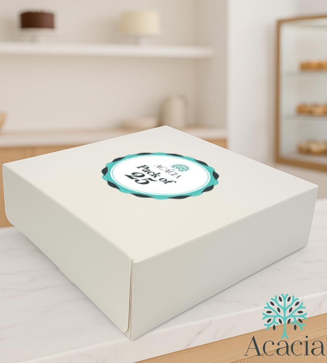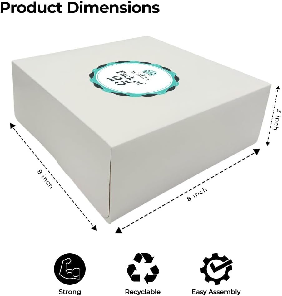 Sold as a pack of 25, the ACACIA 8-inch bakery boxes provide an affordable and eco-friendly solution for packaging desserts and takeaways. Recyclable and practical, they are a reliable choice for professionals and hobby bakers alike who want to keep their creations fresh, secure, and beautifully presented.